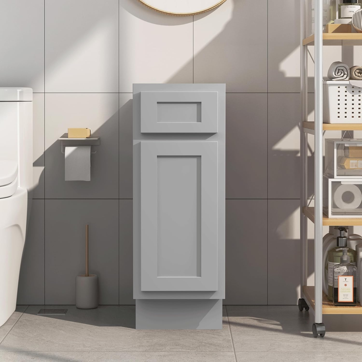 15 Inch Small Bathroom Vanity Cabinet with Soft Closing Drawer and Door, Single Door Right Offset Shaker Design Floor Mount Side Bathroom Organizers