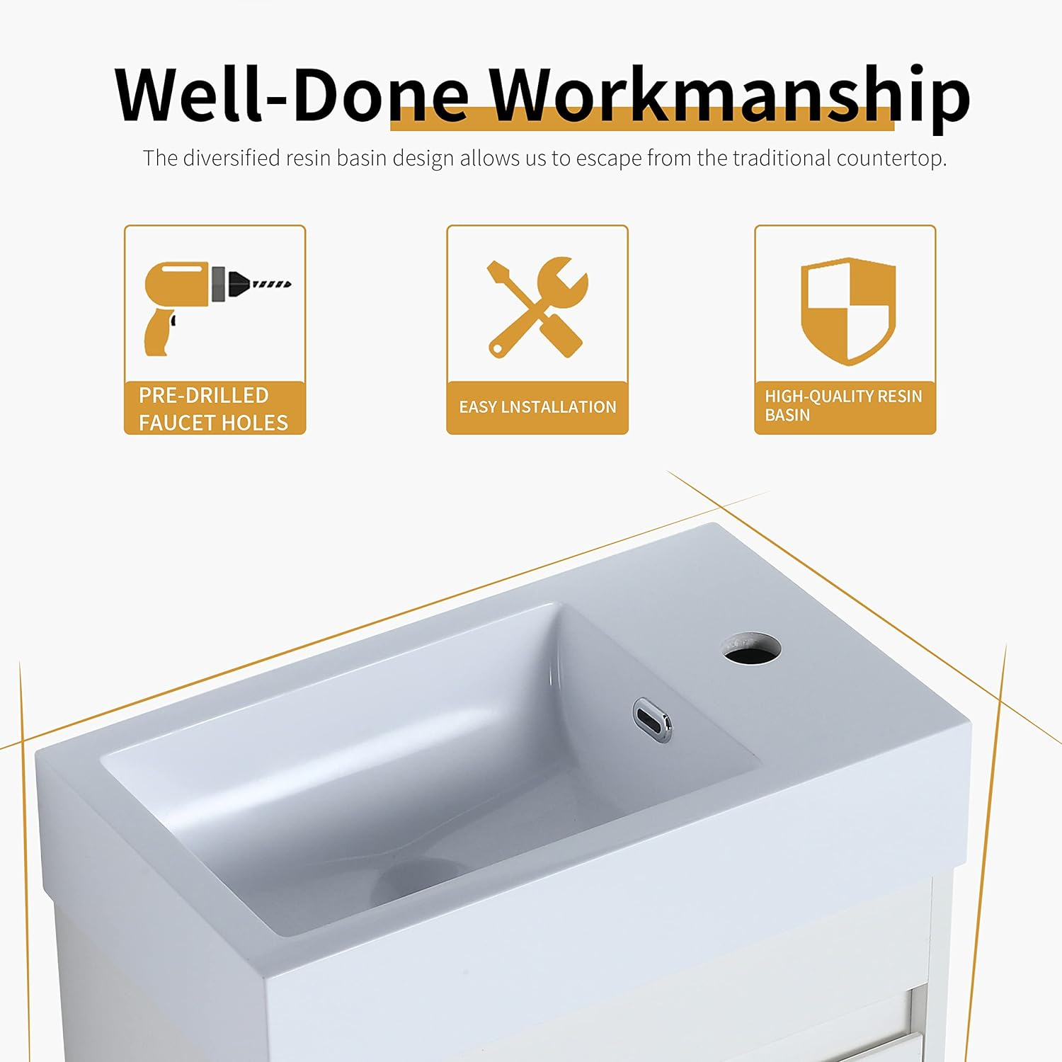 18" Bathroom Vanity with Sink, 18 Inch Floating Bathroom Vanity for Small Space, Single Sink Bathroom Vanity Combo, Modern Bathroom Vanity,