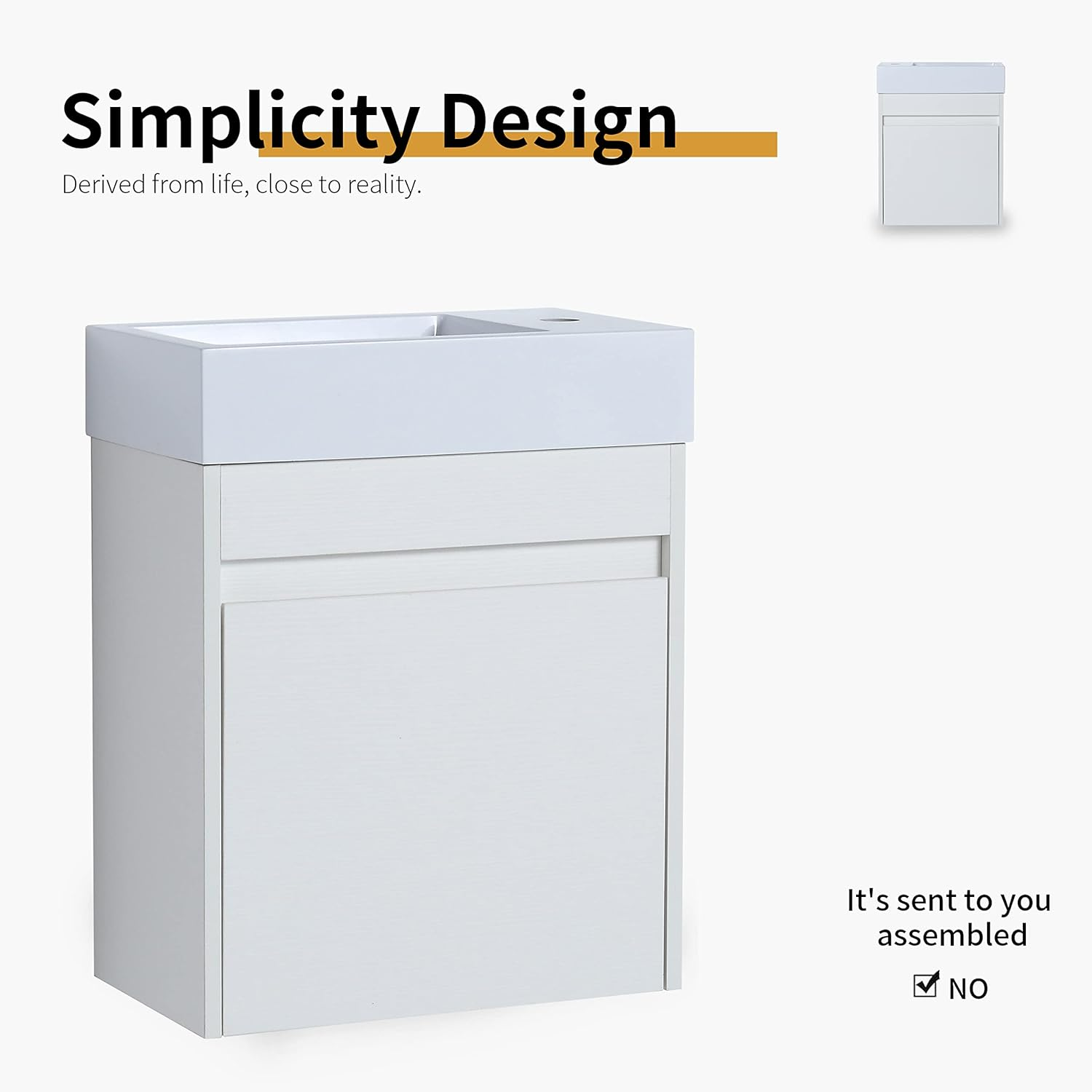 - [Simple Installation]-With an integrated countertop and sink, this attractive vanity offers fast installation.Its wall-hung installation offers a touch of minimalism to any bathroom and allows access to the floor for easy cleaning