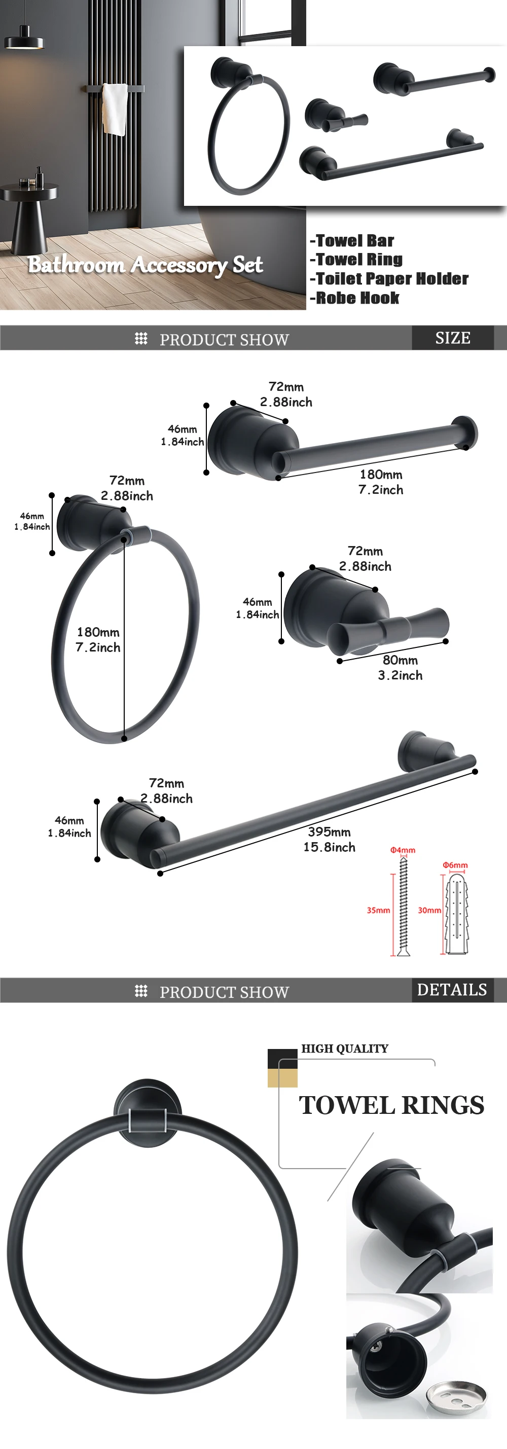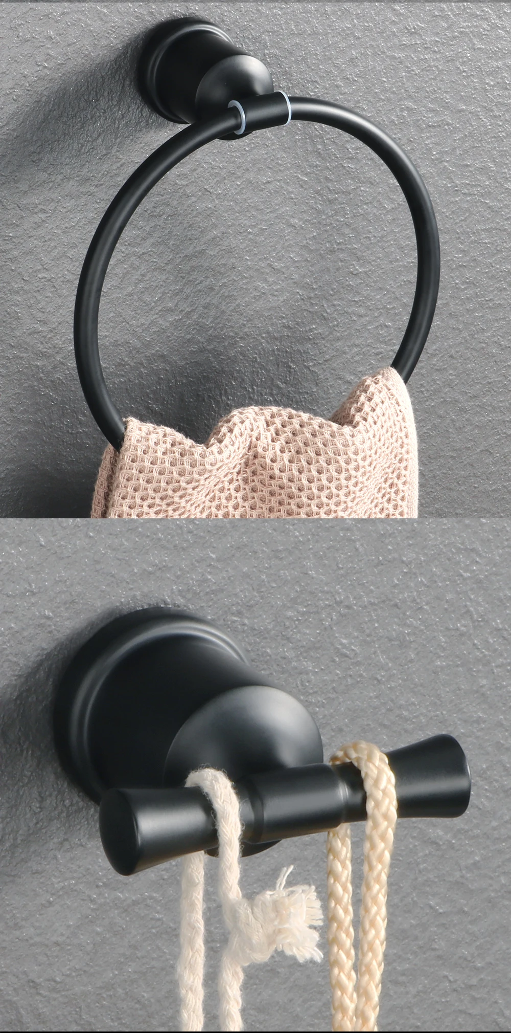 Black Bathroom Hardware Set. Towel Bar & Rack