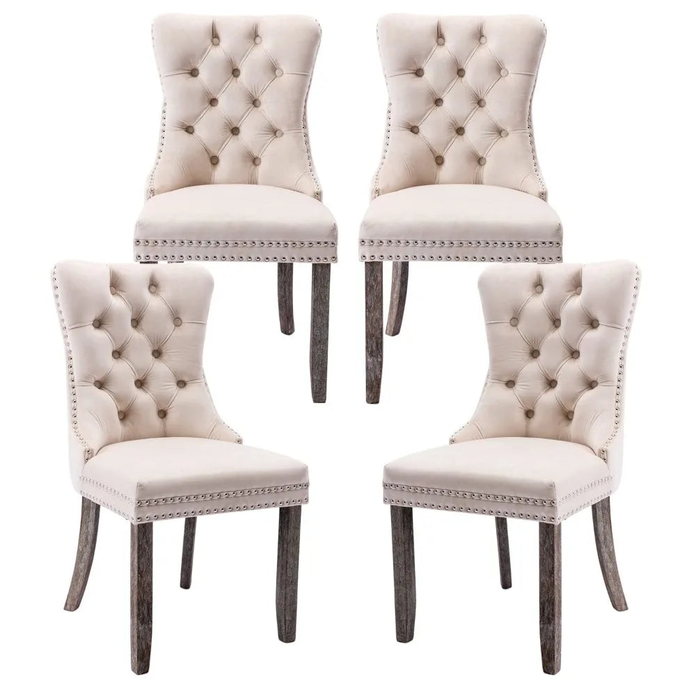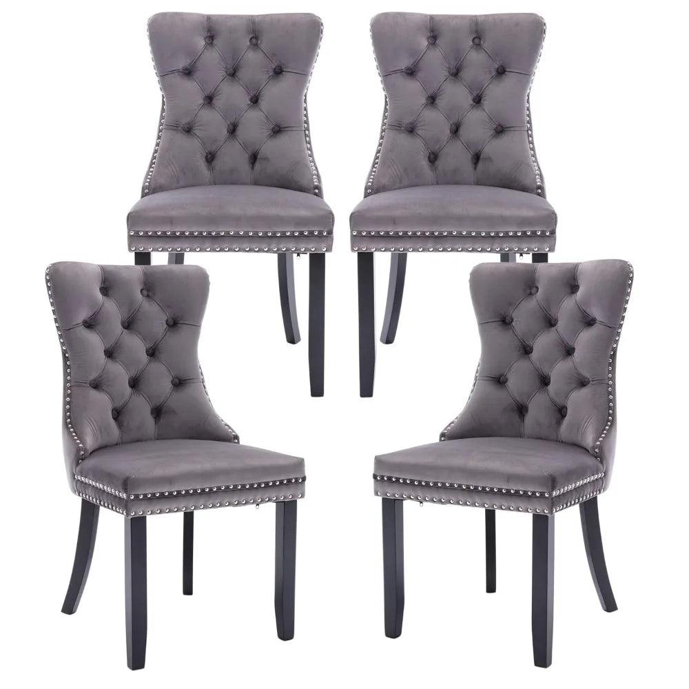 2024 New Velvet Upholstered Dining Chairs Set of 4, Wingback Dining Room Chairs with Ring Pull Trim and Button Back