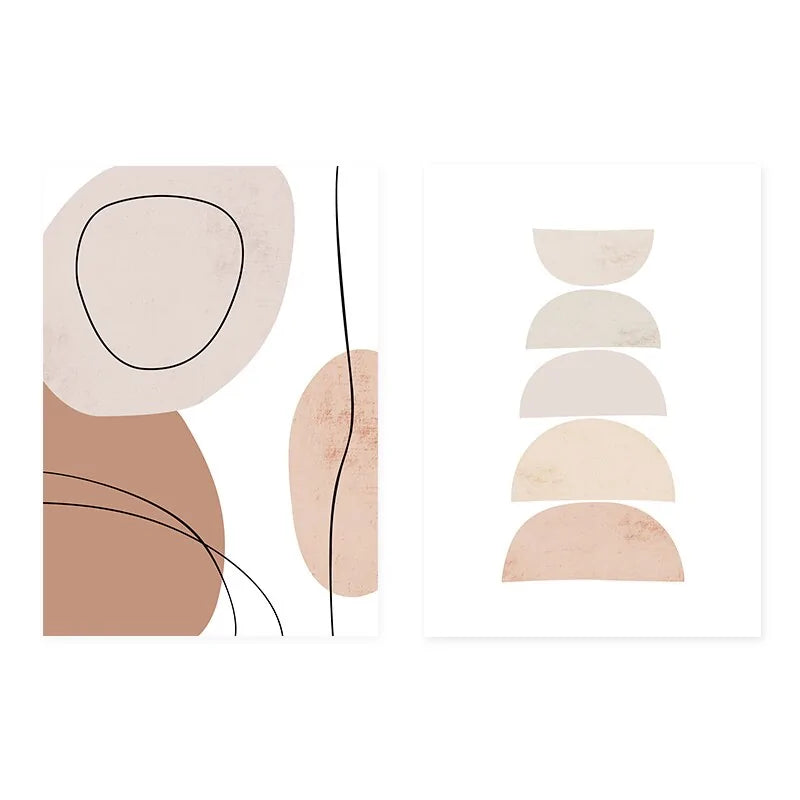 Abstract Geometric Beige Boho Style Canvas Wall Art Painting