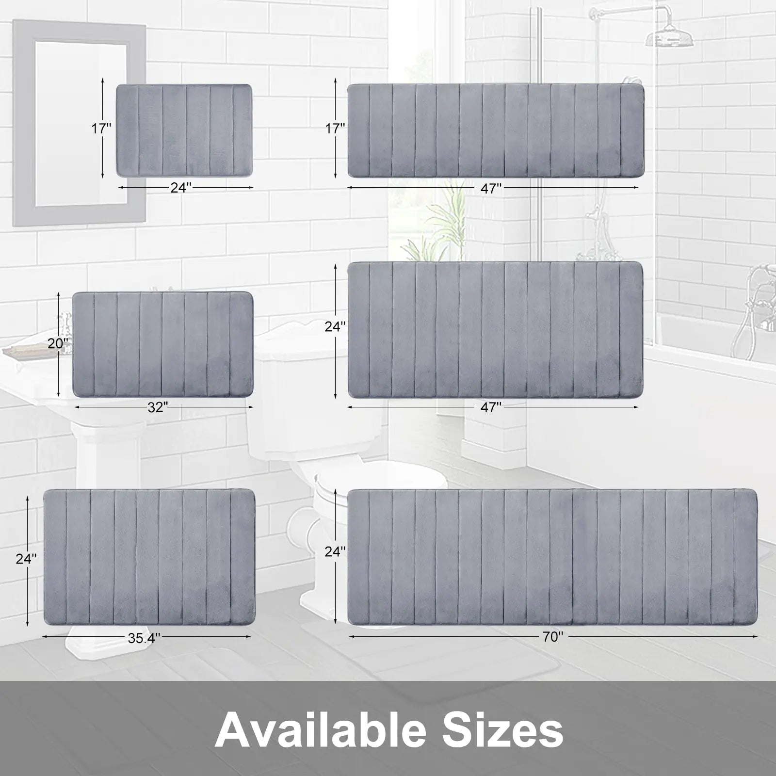 Soft & Comfortable: Crafted with high-density polyurethane memory foam and a microfiber coral velvet outer material, our bath mats offer a soft and cozy feel that's gentle on your skin. Relieve pressure and fatigue on your feet as you indulge in pure comfort.