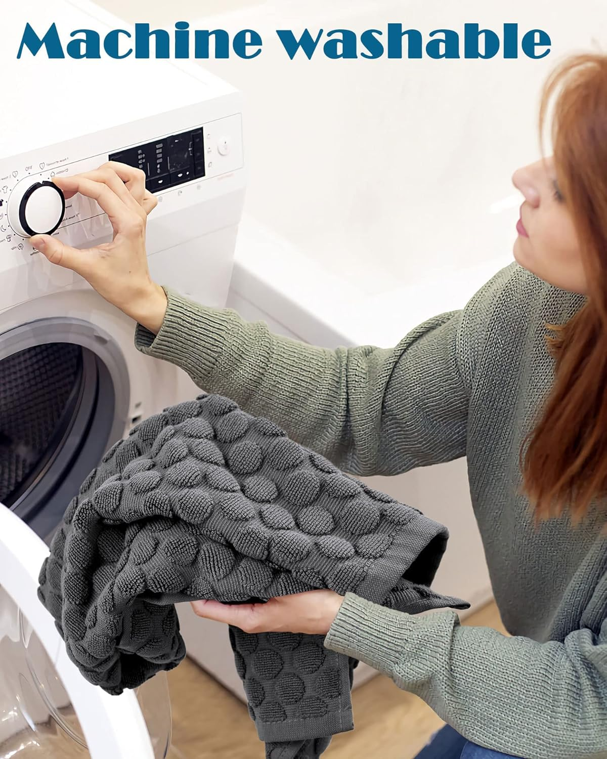 - Machine Washable Floor Towels - Unlike other bath mats that have the non-slip design of rough back that is harmful to your washing machine, these 100% cotton bath rugs are machine washable truly