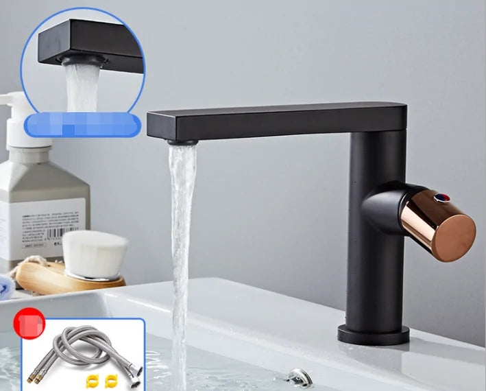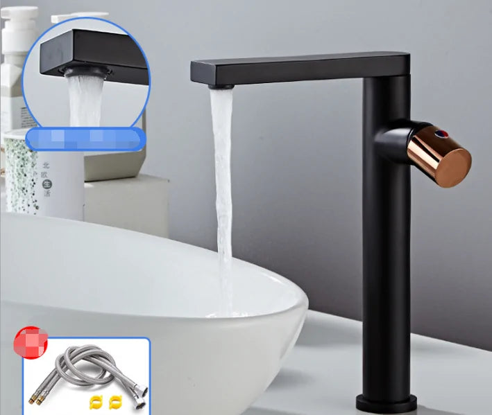 Crafted with precision from high-quality brass, this Basin Faucet embodies durability and elegance, elevating your sink area with its striking black finish. Its minimalist design is accentuated by a single handle, offering effortless control over water flow and temperature.