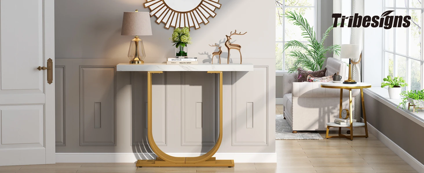 The white tabletop with faux marble texture goes well with unique geometric gold frame makes the entryway table look more like a work of art, making your rooms full of art, bringing a charm of luxury. It is also sturdy and easy to assemble.
