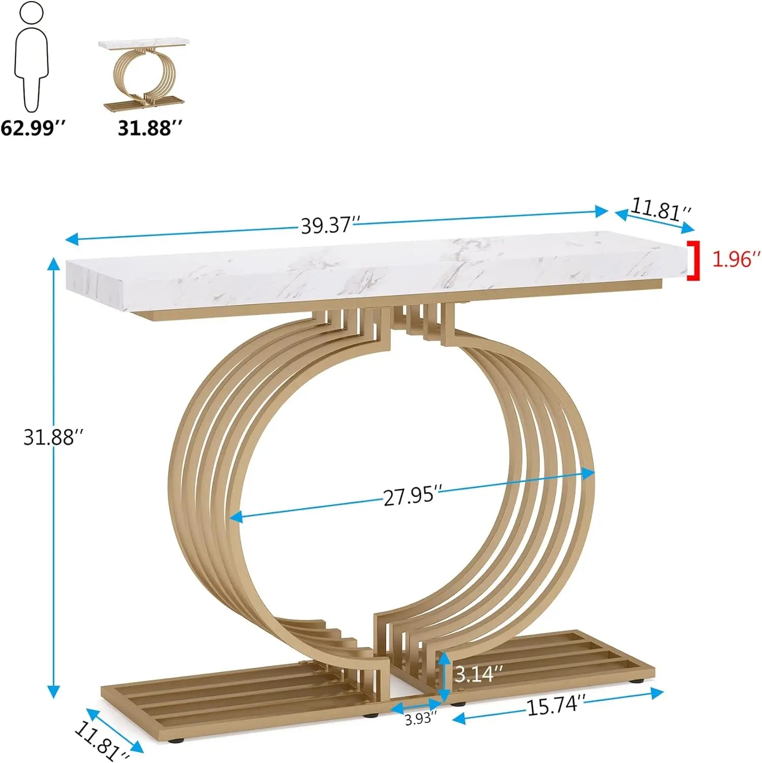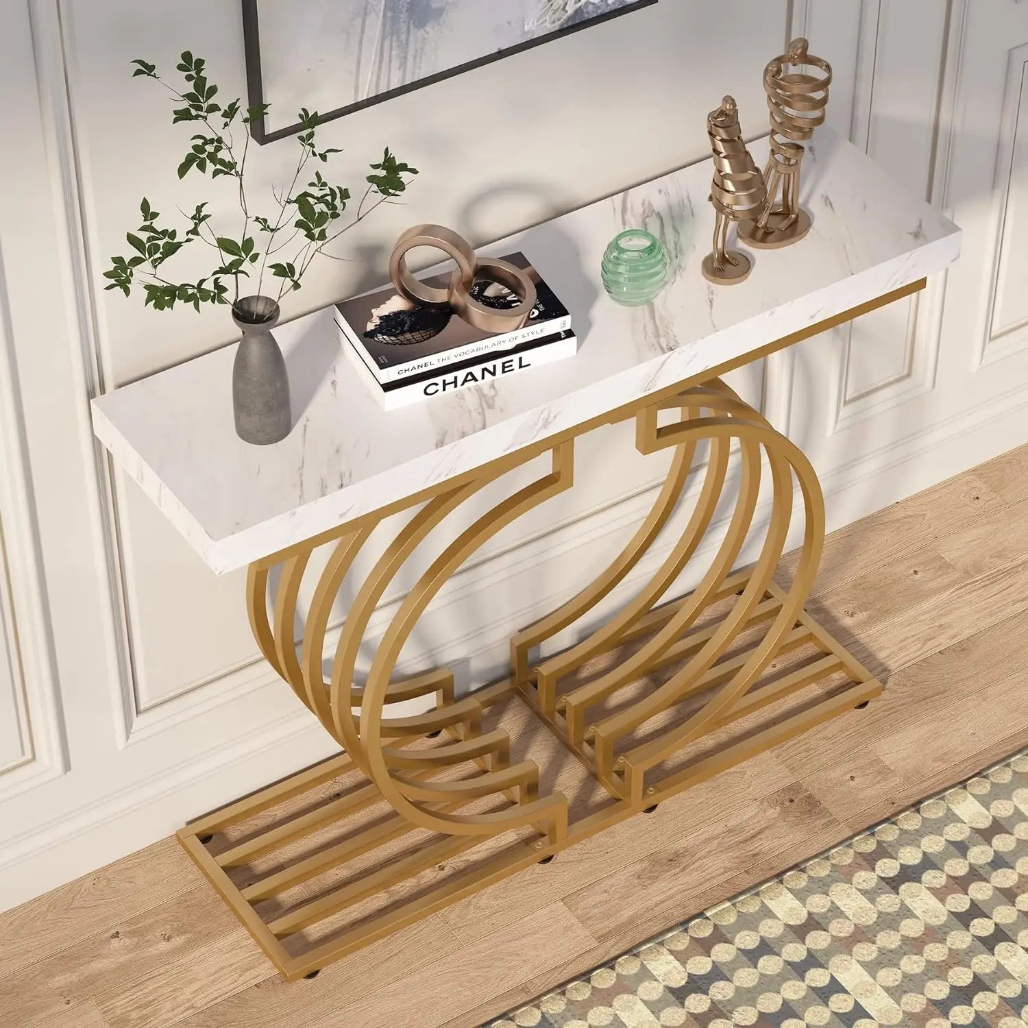 Console Table with Gold Base,40 in Sofa Table,Accent Table for Living Room, Entryway, Hallway, Entrance, Faux Marble White