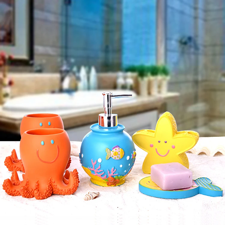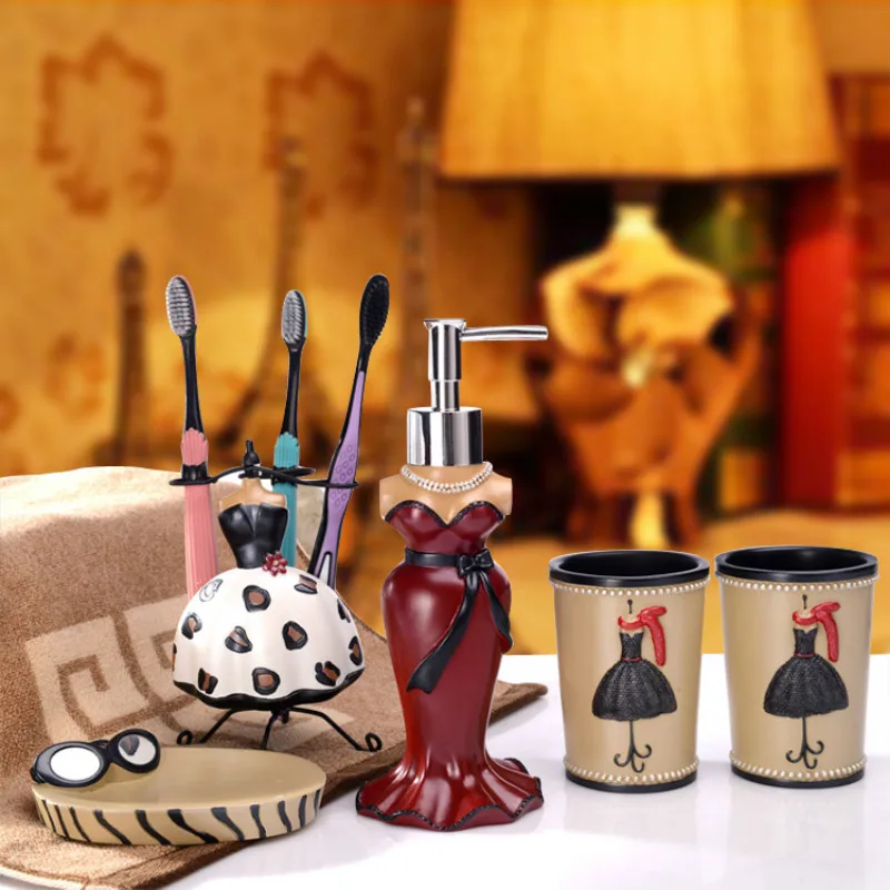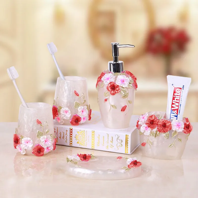 Emboss Bathroom Supplies Lotion Bottle Toothbrush Cup Resin Bathroom Five-Piece Suit Household Bathroom Accessories