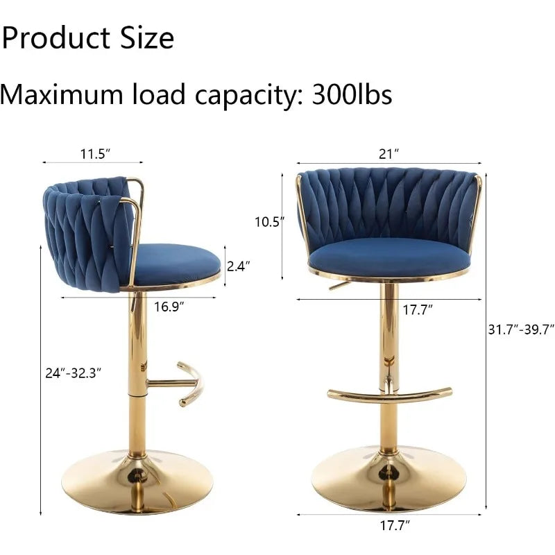 - Adjustable Height: These barstools can match kitchen islands and bars with a lift handle so different counter heights can be easily matched. The base swivels 360° for easy orientation changes.