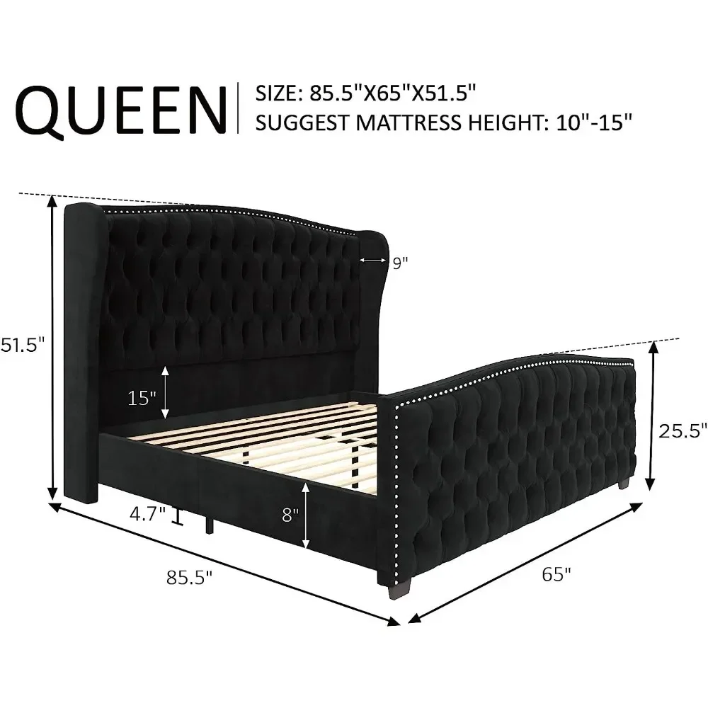 - Grand and glamorous, our king bed frame features elegant tall wingback headboard & deep diamond tufted footboard, stealing spotlight in your bedroom decor.