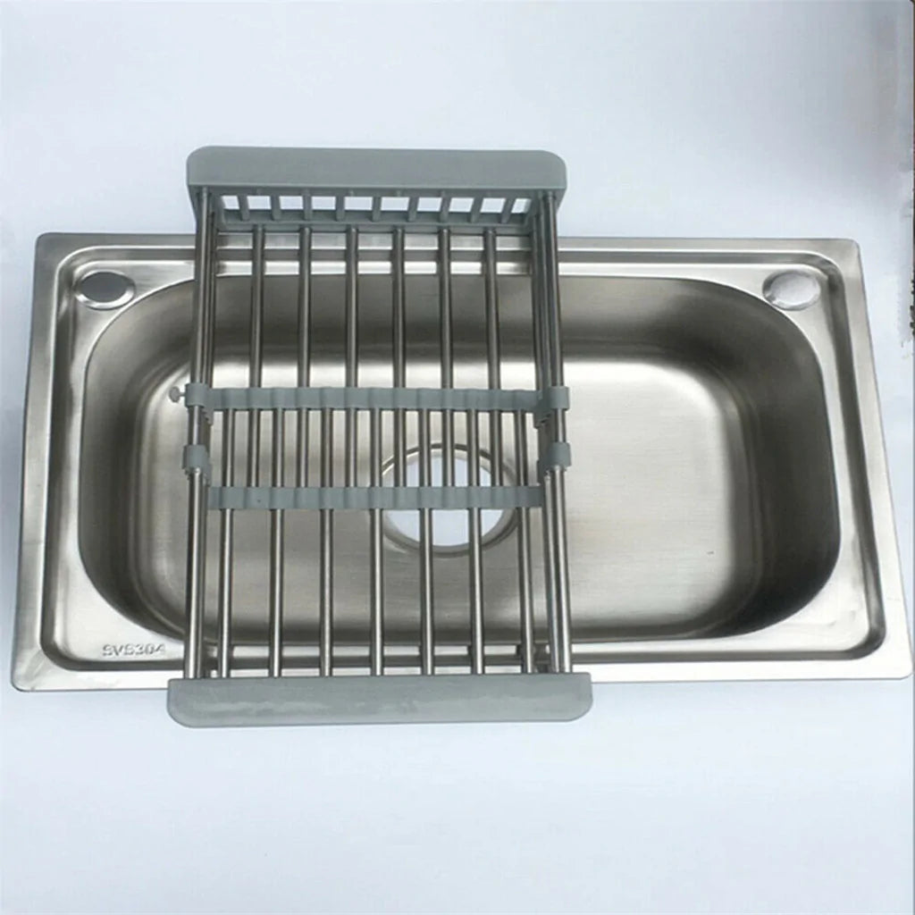 Transform your kitchen into a well-organized space with the Telescopic Drainer Rack. Its telescopic arms adjust effortlessly to accommodate different sink widths, allowing you to dry dishes and kitchen essentials conveniently. The rack's sleek and modern design complements any kitchen decor, while its durable material ensures long-lasting performance. Experience enhanced efficiency and tidiness every day.