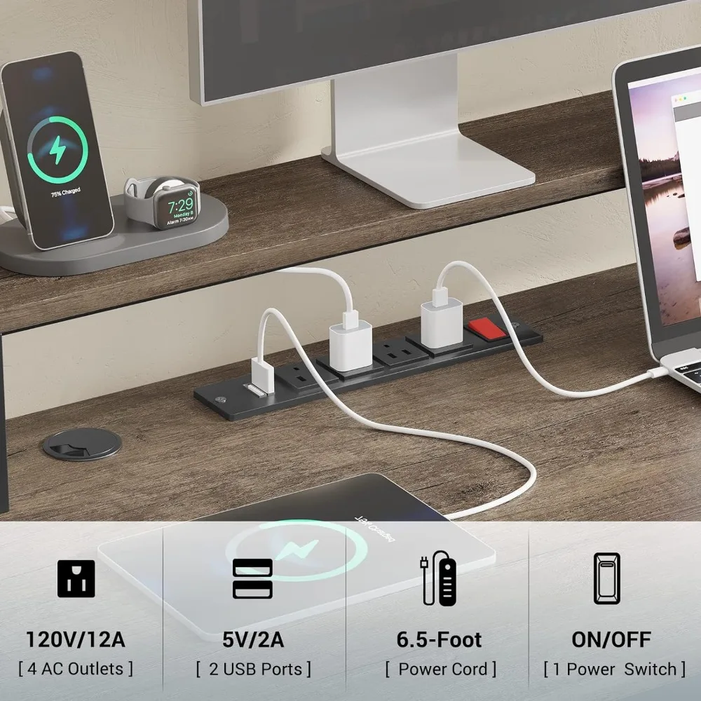 Our charging station includes 4-Outlet & 2 USB Ports to provide power for up to 6 devices simultaneously. Also includes an on-off switch.