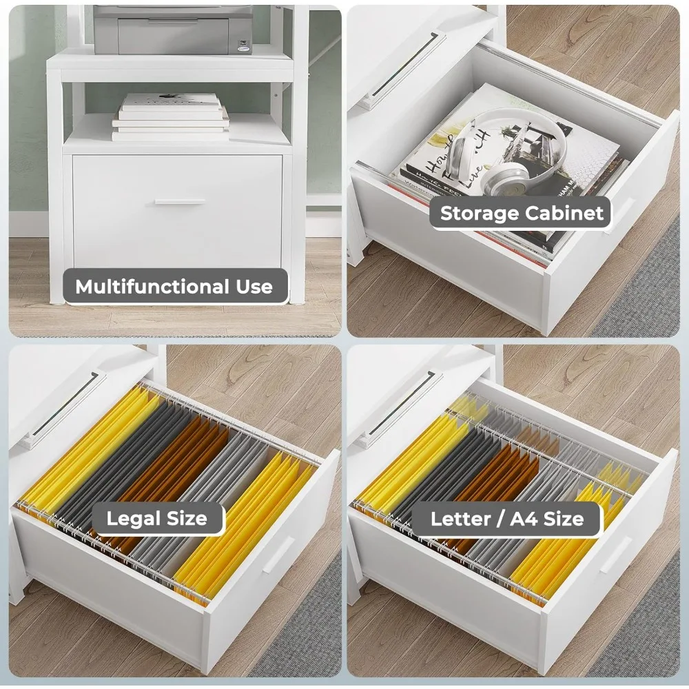 Coming with a file drawer, printer cabinet, and one open storage shelf, with powerful storage space. File cabinet can hold letter/legal/A4 files, and ideal for important/confidential documents, keep them organized and safely tucked away.