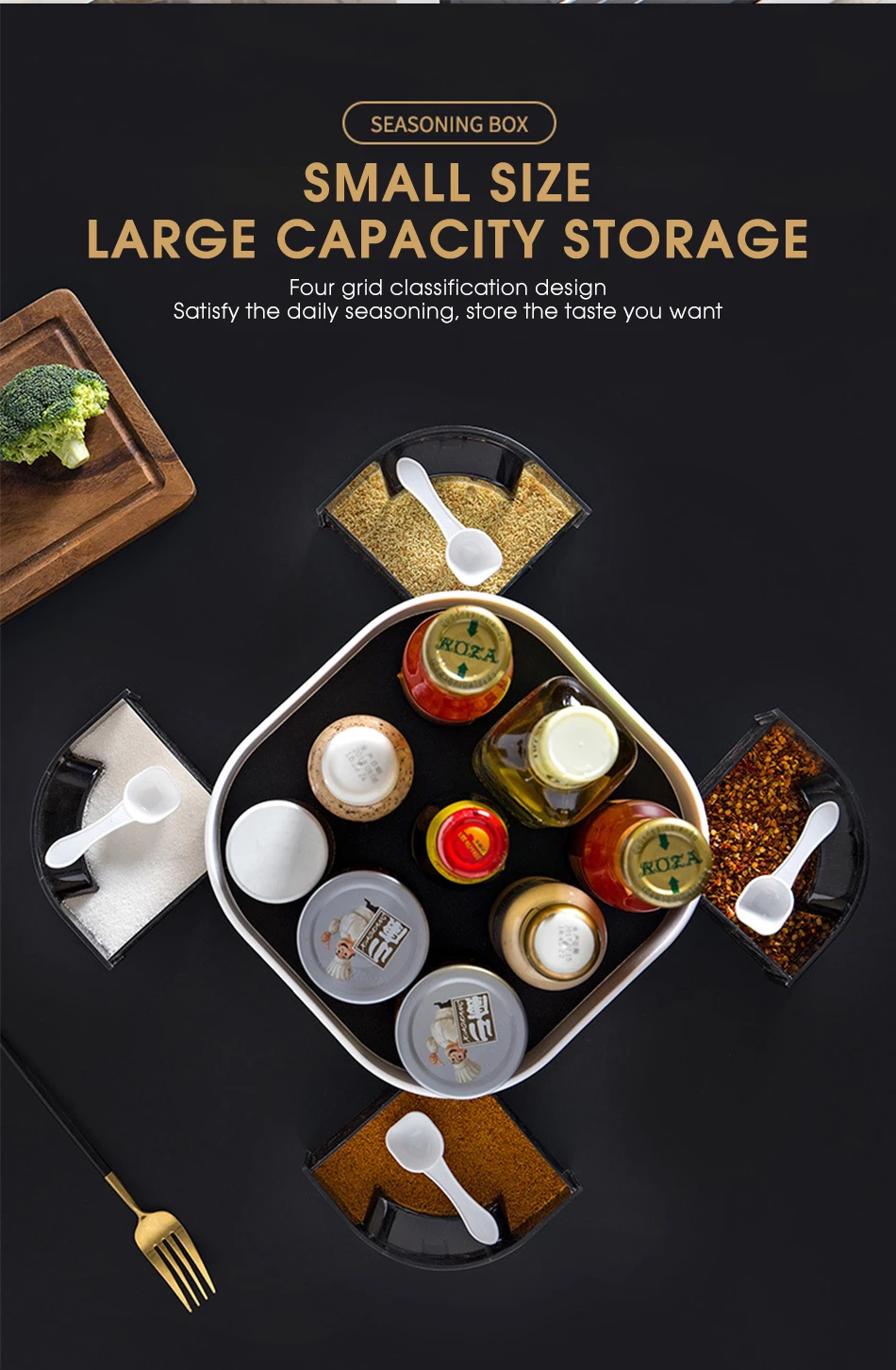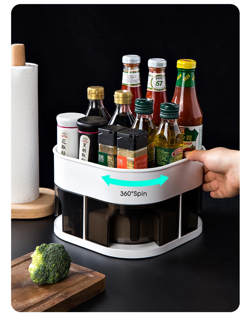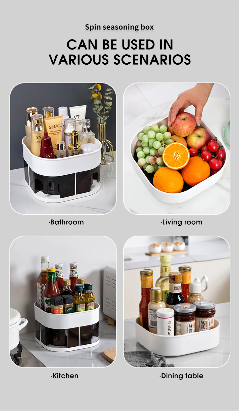MICCK 360° Rotation Storage Box Kitchen Organizer Cosmetic Seasoning Rack with Non-Slip Mat Household Items Bathroom Accessories