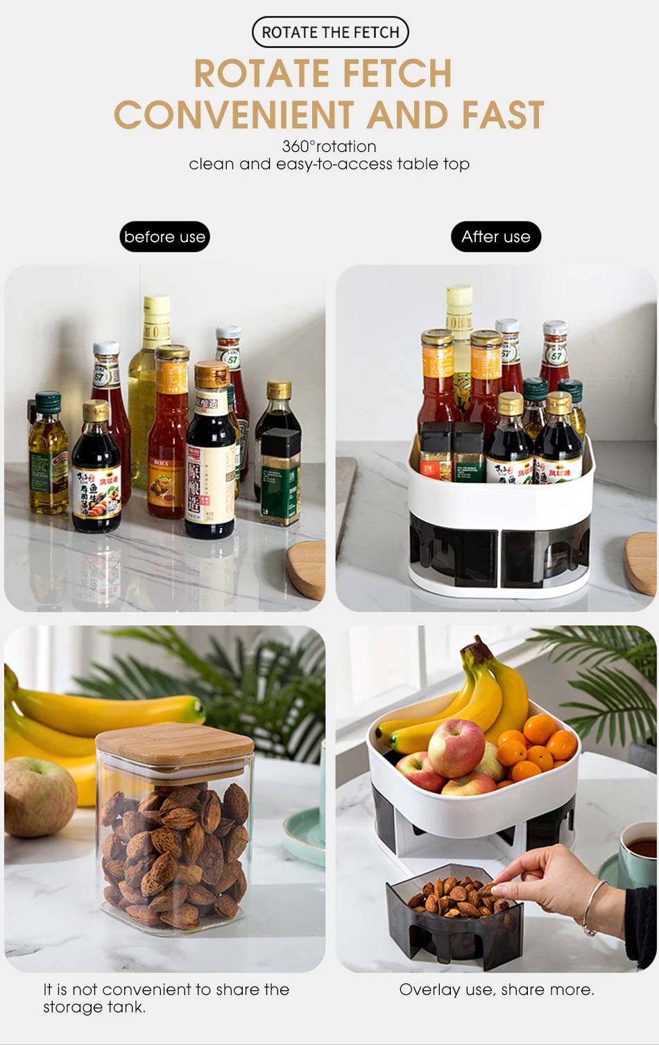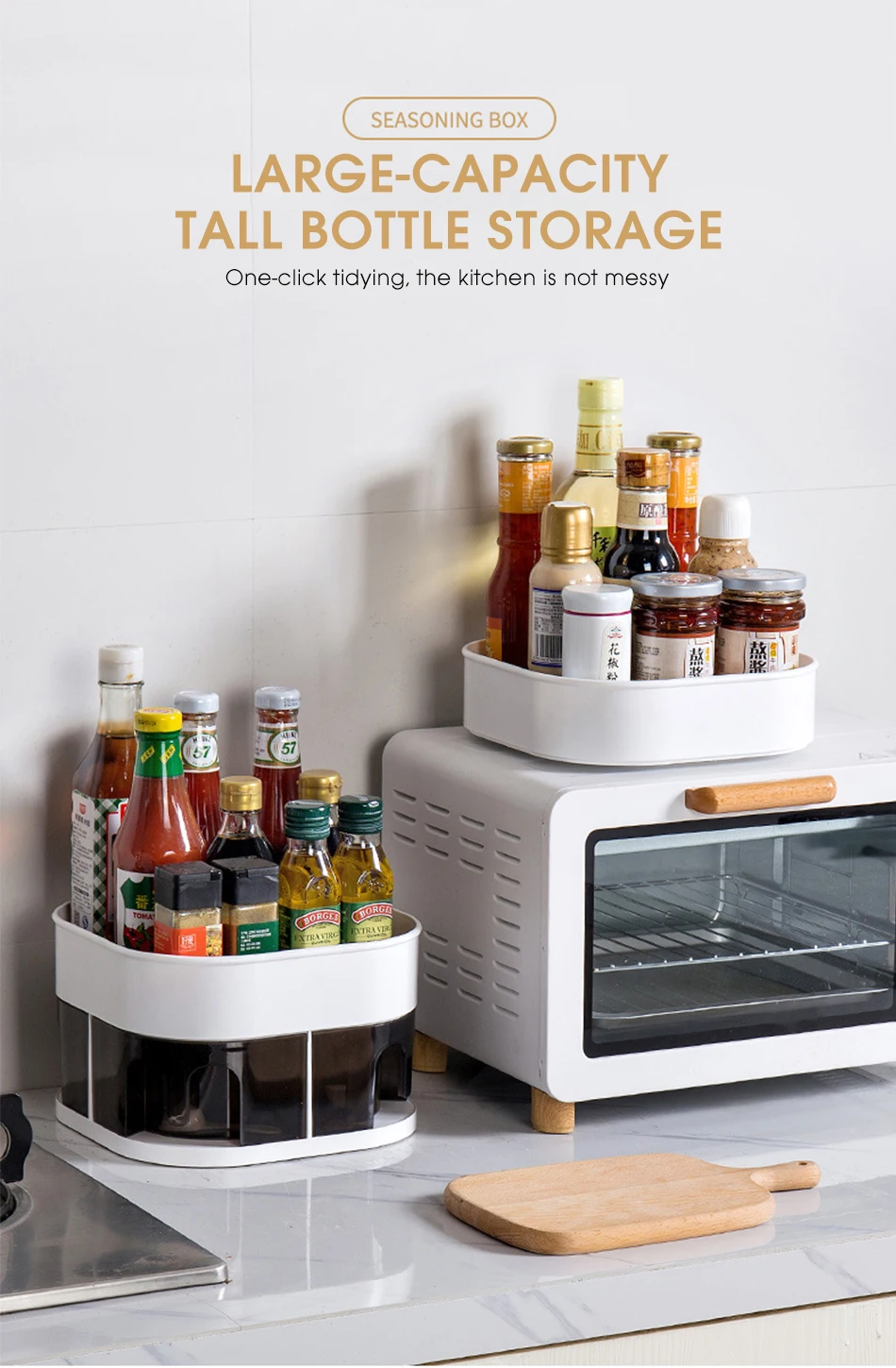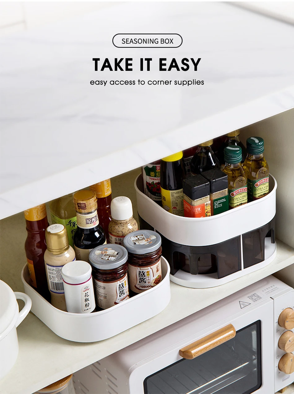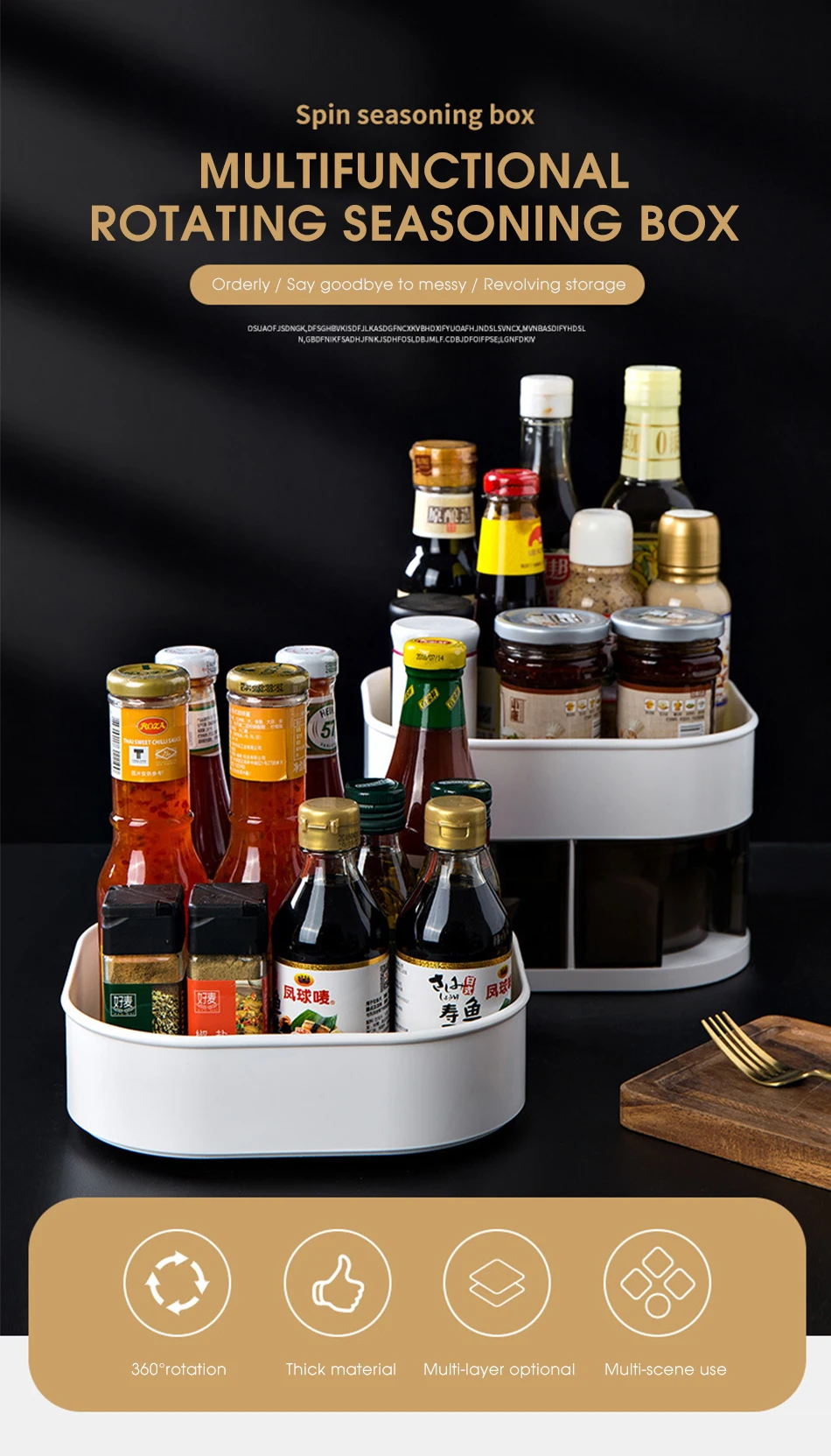 MICCK 360° Rotation Storage Box Kitchen Organizer Cosmetic Seasoning Rack With Non-slip Mat Household Items Bathroom Accessories