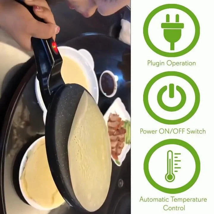 Make Crepes in Seconds: Say goodbye to lengthy crepe-making processes! With our electric griddle crepe maker, crafting delicious crepes is now a breeze. Its pan-style design and long handle ensure effortless cooking every time.