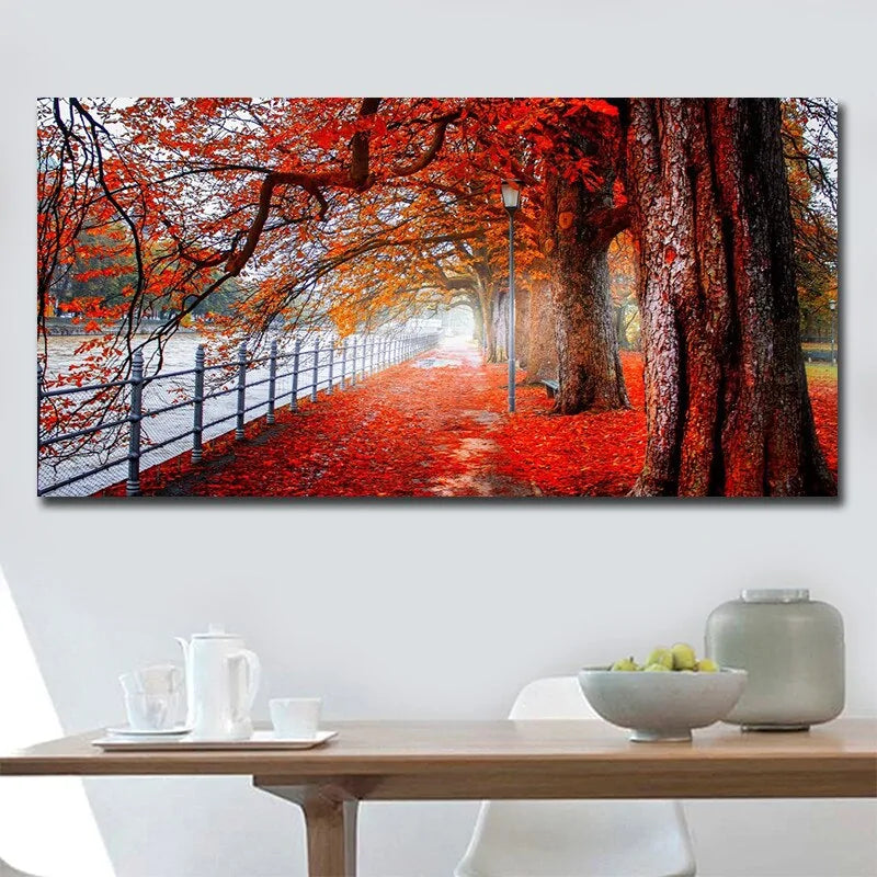 Elevate your home decor with our captivating red forest landscape wall pictures. These modern art pieces add a touch of nature's beauty to your space, creating a serene and sophisticated atmosphere.