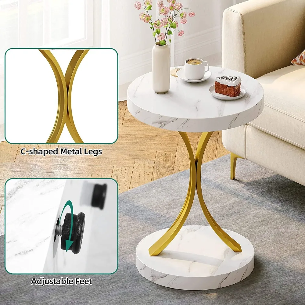 - Delicate Design & Space Saving: Simple yet tasteful, this round end table features a classic white marble top on an stylish but sturdy golden C shaped metal frame. With its small footprint, it can easily be moved wherever you need it. A good storage helper for the stylish room!