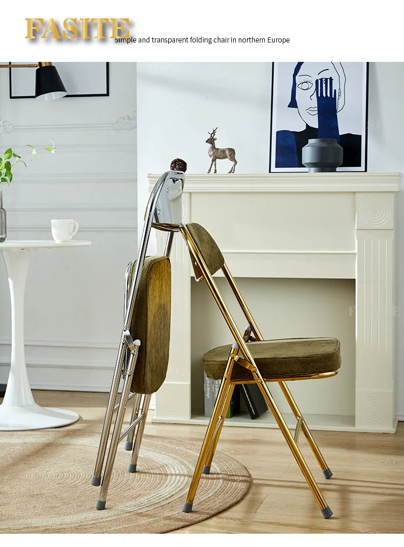 Retro Corduroy Dining Chairs Chairs for Kitchen Furniture Backrest Chair Neoclassical Design Creative Dining Room Folding Chair