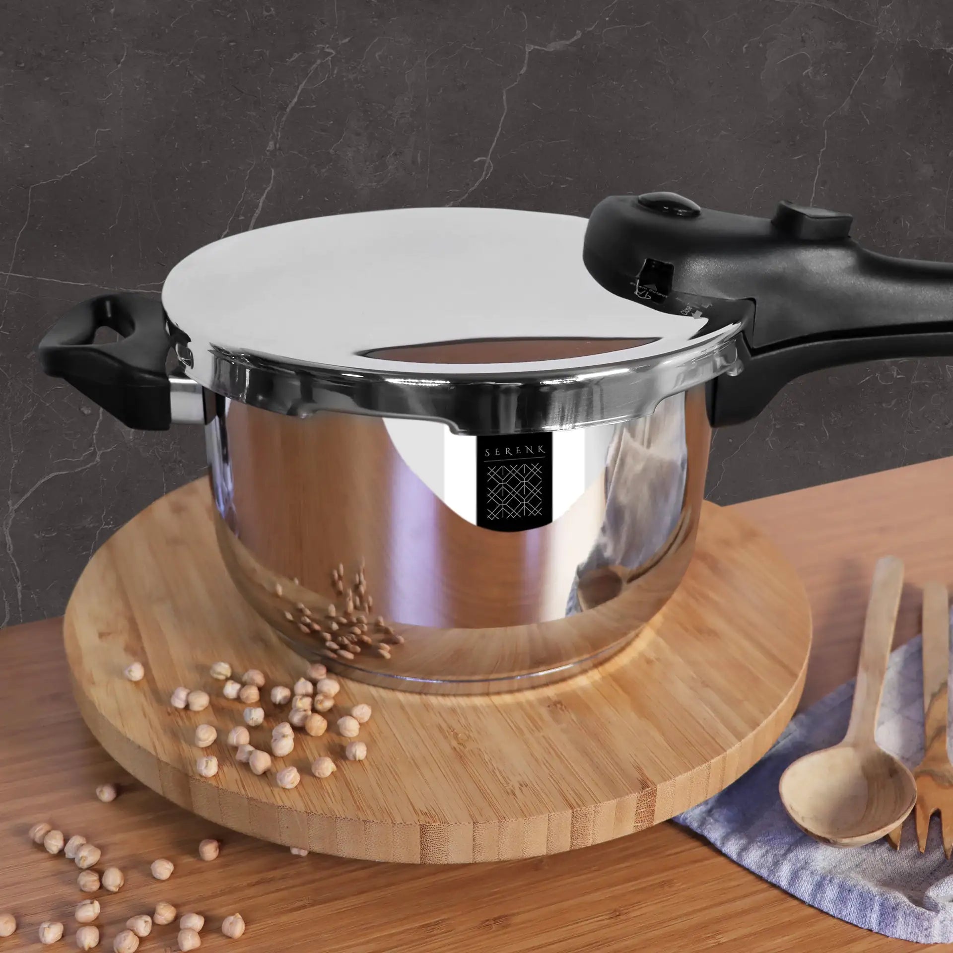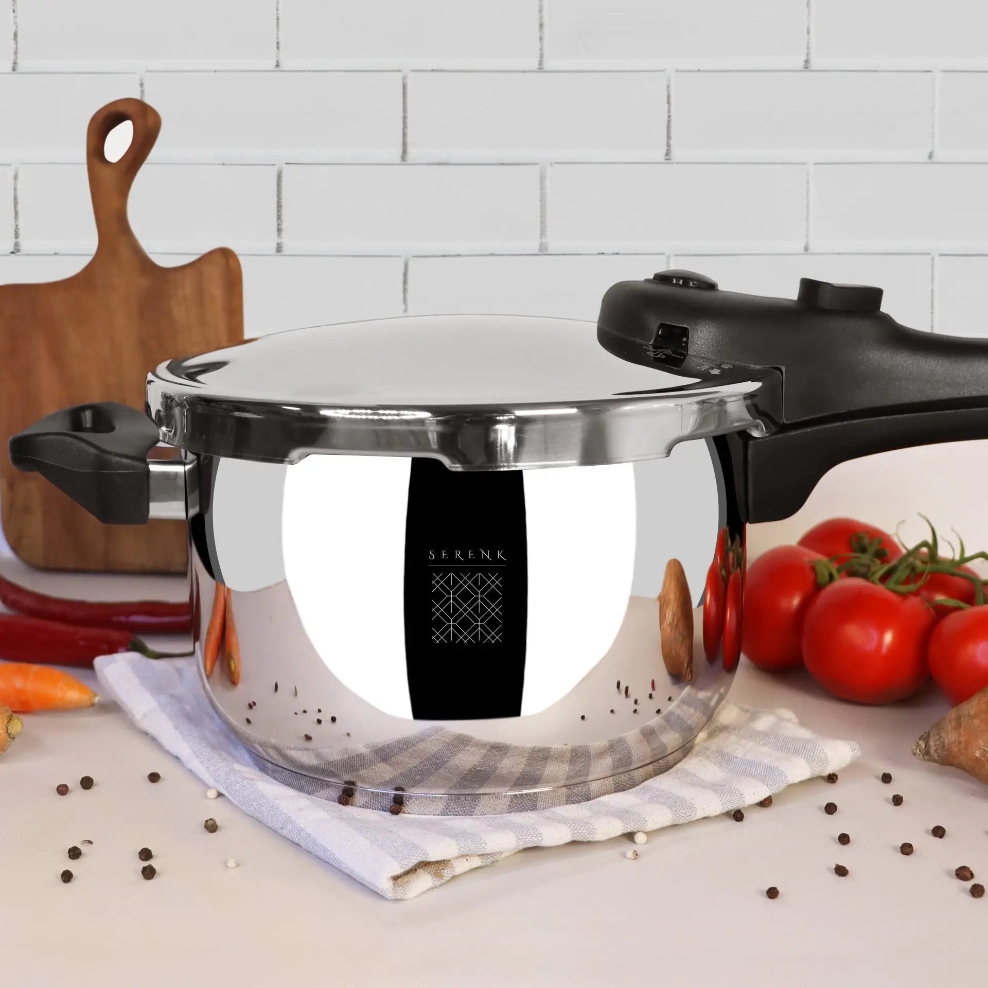 STAINLESS STEEL PRESSURE COOKER: Serenk pressure cooker is constructed of 18/10 stainless steel which exceedingly resistant to scratches, staining and will maintain its performance for a lifetime. Besides being durable, stainless steel is healthy, does not contain any toxic material, and is suitable for contact with food.