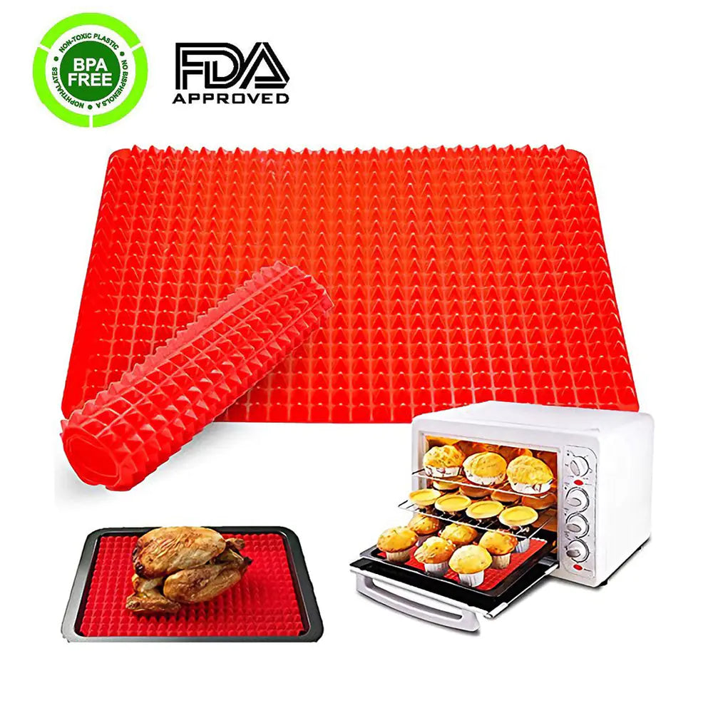 Promote healthier eating habits with the Silicone Pyramid Pan Bakeware. The raised pyramid design allows excess oils and fats to drain away, reducing calories without compromising flavor. Enjoy guilt-free indulgence with every delicious bite.