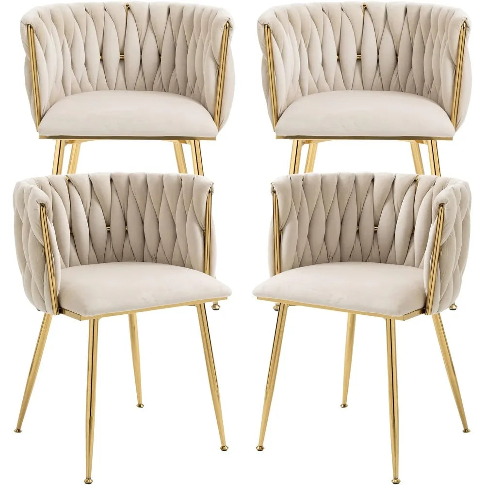 Velvet Dining Chairs Set of 4, Woven Upholstered Dining Chairs with Gold Metal Legs, Modern Accent Chairs for Living Room